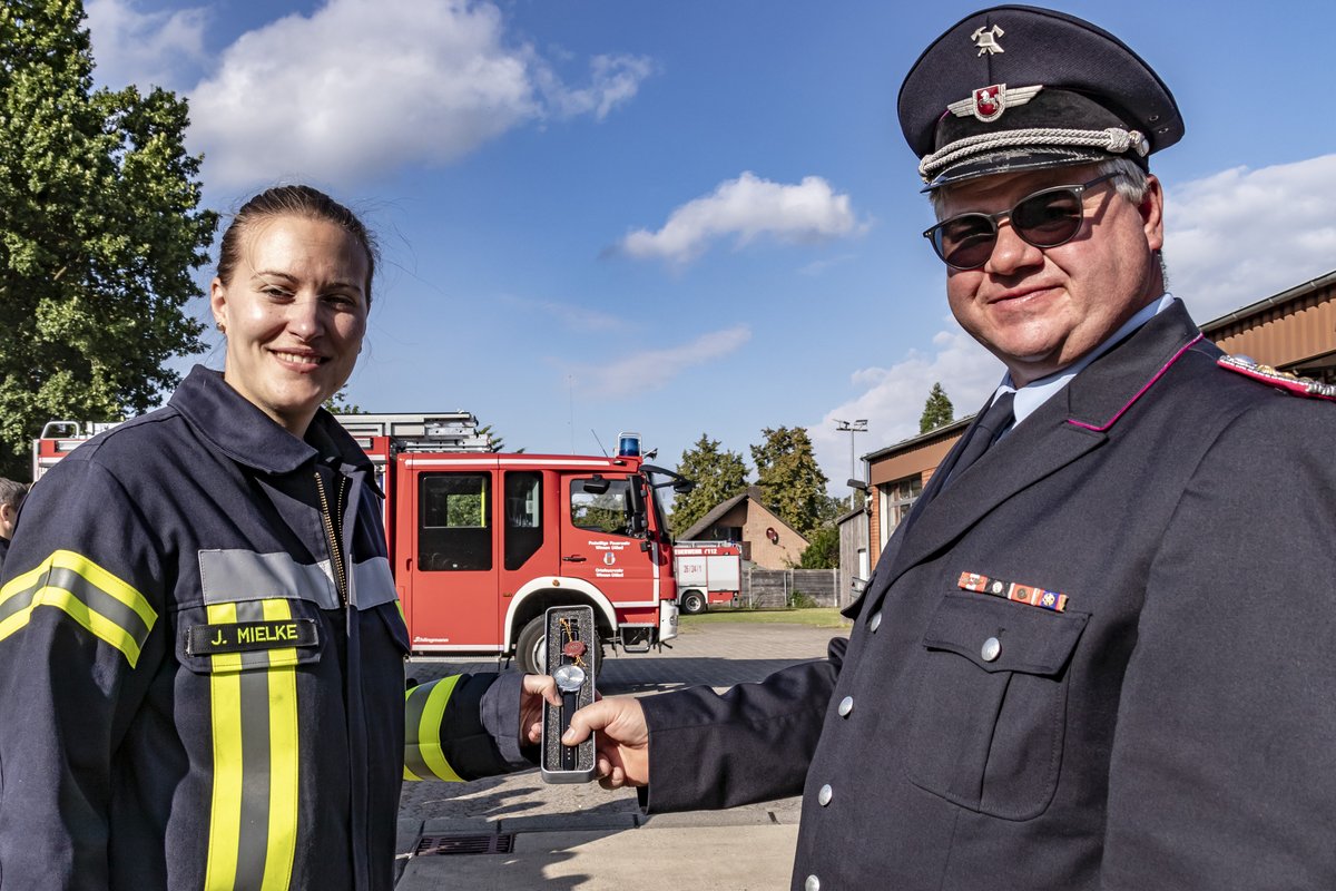 Wie bereits berichtet, fand der Startlehrgang ins aktive Feuerwehrleben wieder statt und so wurde in den letzten Wochen viel gelernt und geübt. Mit der Zeit festigten sich die erlernten Handgriffe und so wurde aus dem anfänglichen Durcheinander eine klare Struktur und Handlungsweise sichtbar. Am 23.09. war es nun endlich so weit; unter den Augen des stellv. Kreisausbildungsleiters sollten die Teilnehmenden ihr Können in Theorie und Praxis unter Beweis stellen. So wurde im Theorieteil ein Multiple Choice Test durchgeführt und im Anschluss ein erdachtes Einsatzszenario mit Löschübung, Leitereinsatz und Menschenrettung abgearbeitet.